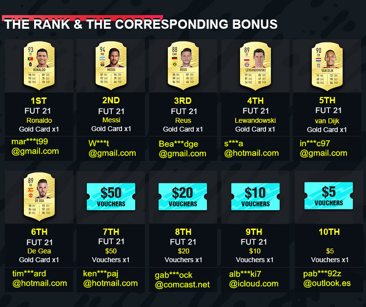activity of pre-order FUT 21 vouchers Ranking finally comes to the end. All the