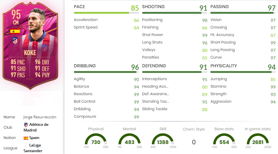 FUTTIES Winner Koke. On top of his 95 OVR rating which is based upon five 90+