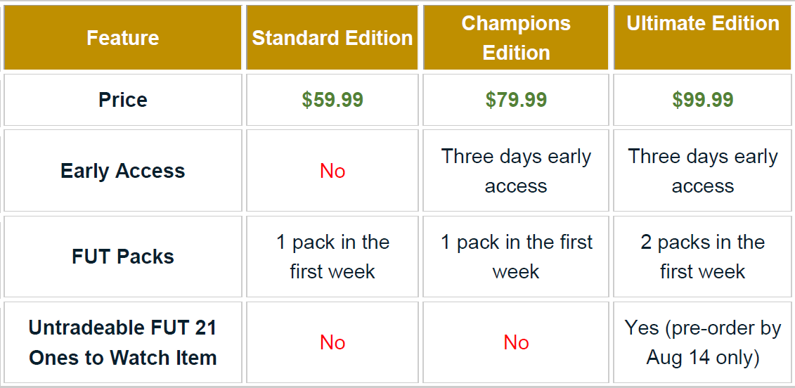 1, 2020, even 5 days earlier than Champions Edition and Ultimate Edition. Thus, why not just spend $4.99 to join EA access membership for 1 month only? You could not only enjoy 10 hours to play FUT 21 much earlier than others, but also save $1-5 to buy the game.